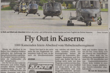 Long before it was finally disbanded on June 30, 2014, KHR 26 had already seen a significant reduction in personnel. The number of remaining helicopters was also steadily decreasing. In September 2013, a "fly out" was organized in Roth. In December 2013, the regiment's last MBB BO 105s took off.